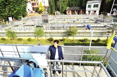 11月27日,赤壁市官塘驿镇污水处理厂,管理员正在查看每日运行情况。