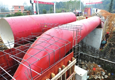 12日,崇阳县青山镇崇青公路南林村段,技术人员正忙着安装供水管道。近年来,随着崇阳城镇化进程加快,县经济开发区内多家大型企业相继进驻,用水量骤增。