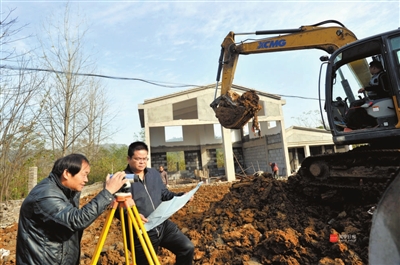 日前,赤壁市官塘驿镇垃圾中转站施工现场,工人们正忙着进行配套工程施工。