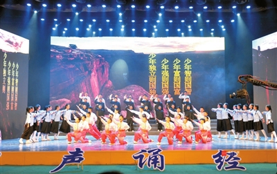 与经典为友,与先贤对话。19日下午,由省委宣传部、省教育厅、省广播电视台联合主办的“同声诵经典——2017湖北省起点阅读 朝读经典”校园巡回展演活动走进咸宁。来自全市多所中小学校的1000多名师生汇聚一堂,现场同上一堂课,同声诵经典。 记者 陈红菊 摄