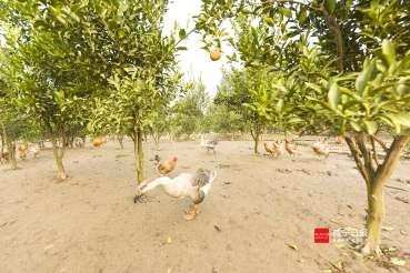 据介绍,该基地创办于2010年,面积260亩,60亩脐橙里散养着2000多只土鸡和鹅,林中猪圈养猪20头,野外放山羊,50亩原生态鱼塘供垂钓,3亩菜地供应农家乐。