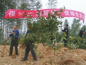 受理该案后,咸安区人民检察院联合林业、森林公安部门立即奔赴现场,将正在砍伐的吴某当场抓获,并对其进行严肃教育,作出补植复绿补偿处理。当日,王某及其亲属补种栾树苗、桂花苗等2180余株。