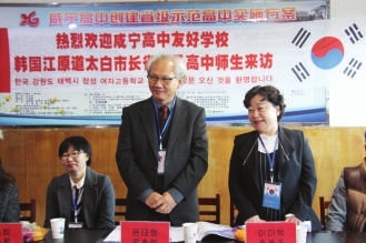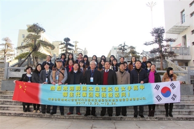 本报讯 记者汪俊东、通讯员陈蕾报道:12月20日,韩国江原道太白市长省女子高中尹泰炯校长率15位老师和同学访问咸宁高中。该校通过课堂和课外与韩国朋友交流和合作,互相学习,互补长短,扩大师生视眼,增进师生友谊,激发教学热情。在欢迎仪式上,咸宁校长作了热情洋溢的讲话。
