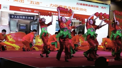 展示会上,汉口银行咸宁分行以红红火火的伴舞,展示了如何打造普惠金融汉银名片;咸宁农村商业银行展示了专题片《在您身边,有温度的银行》和微电影《最后一公里》 ;湖北银行咸宁分行、交通银行咸宁分行有关负责人以PPT的形式,汇报了普及金融服务的经验;中国邮政储蓄银行咸宁分行展示了专题片《践行普惠金融,履行社会责任》、微电影《大山的曙光》。