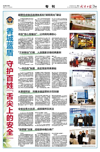 2017年12月22日,市委书记丁小强在香城都市报头版头条《十大“放心早餐店”评选结果即将出炉》上作出重要批示:“放心早餐店”评选活动很有意义,有利于提高餐饮质量标准,形成品牌效应,让市民吃得放心,让“质量强市”战略名符其实。