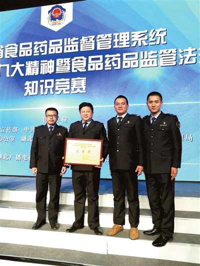 2017年12月7日晚,由省委宣传部、省委法治湖北建设领导小组办公室、省普法工作办公室、省人民政府法制办公室和省食品药品监督管理局联合主办的全省食品药品监管系统学习党的十九大精神暨食品药品监管法规知识竞赛在湖北广播电视台举行,市食品药品监督管理局党组成员、总工程师徐向阳带领咸宁市局代表队经过有问必答、争分夺秒、奋勇争先、步步为赢等四轮的激烈比拼,斩获此次竞赛三等奖。