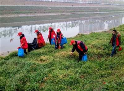 1月2日,200余名党员志愿者、青年志愿者来到淦河两岸,清理沿河堤、绿化带等处垃圾杂物。