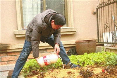 “菜叶子、果皮等经过处理可以变成肥料。”贾希桂将菜根菜叶放到自家院子的菜地里,这样厨余垃圾就得到很好利用。