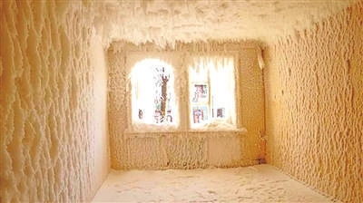 这所房子位于俄罗斯叶卡特琳堡,一月份该地气温骤降至零下17摄氏度,这座房子因一处水管破裂,几乎整个房间都被覆盖了一层冰,宛如童话故事中的场景。“低温炸弹”将破旧的建筑变成了美景,客厅就像一个冰冷的洞穴,旧家具上镶嵌着晶莹剔透的“水晶”。(本报综合)