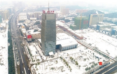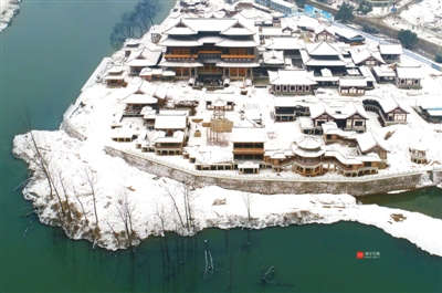空中看雪景,空中俯瞰雪中的咸宁。