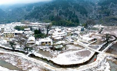 27日,记者一行冒雪走进崇阳县天城镇茅井村时,有种“银封万仞迟归鸦,江舟孤渡无人迹”之感。