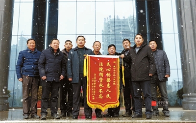 1月26日,通山县洪港镇杨林村十二组村民冒着严寒将一面锦旗送到市中院,以表达他们内心的感激之情。