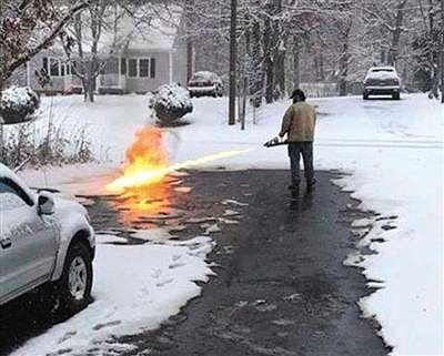 近日,在美国弗吉尼亚州阿默斯特,一名叫纳撒尼尔的男子看杂志广告时,偶然想到用喷火器除雪的方法。他在使用此方法前,查阅了当地法律,并咨询了相关人士,了解到用喷火器除雪是合法的。他随即购买了喷火器,轻松除掉自家门前的积雪。