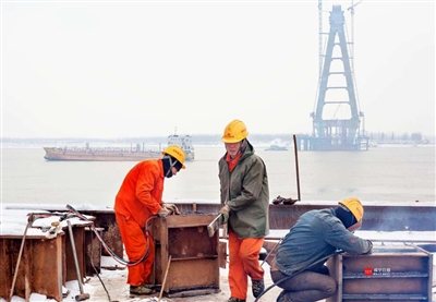 1日,嘉鱼长江江面气温零下6°,长江大桥JY-1标项目经理部全体职工发扬“攻坚克难、甘于奉献、勇于胜利”的路桥精神,在确保安全的前提下,掀起“战严寒,保生产”劳动热潮,努力把极端天气给项目生产造成的损失降到最低,实现安全生产确保生产进度。