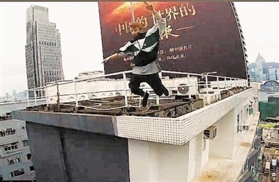 近期,三名外国跑酷爱好者在香港一幢数百米高大楼的屋顶上奔跑、跳跃和翻转,画面令人眼花缭乱。