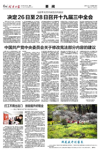 中国共产党中央委员会关于修改宪法部分内容的建议
