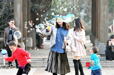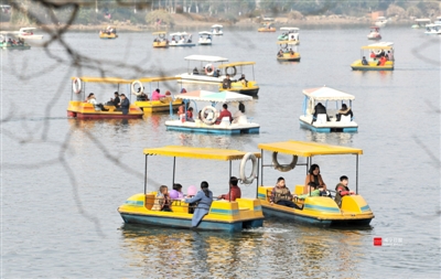 随着气温回升,市民纷纷走出家门,或三五成群结伴而行,或邀约一家老小,前往公园欣赏美丽风景,体验有趣的娱乐设施,舒展心情,享受和煦春光。