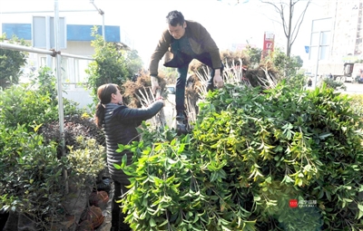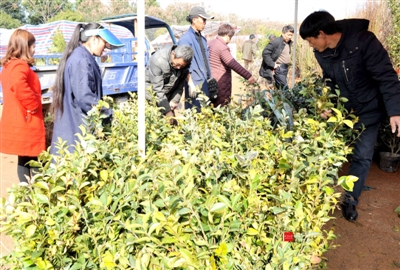 针对气温回升,有利植树的大好时机,广大顾客纷纷前来选购红叶石楠、桂花苗等各类树苗,苗木市场呈现出人勤春早、苗木俏销的热闹场面。