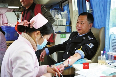 本报讯 通讯员蒋昊报道:3月6日上午,咸宁市2018年培育和践行社会主义核心价值观学雷锋志愿服务活动“春雨行动”在市人民广场举行,咸宁中院积极组织干警参加。活动现场,干警们在市中心血站设立的献血车上,积极有序地进行登记报名及验血、献血,符合献血条件的5名干警献血总量共计2000ml。