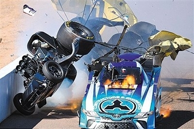 近日,68岁传奇赛车手约翰与28岁赛车手乔尼,在美国亚利桑那州举办的全美赛车四分之一淘汰赛上一决高下。就在约翰即将取得胜利时,赛车油箱突发故障漏油,引发爆炸。强大的冲击力使乔尼的车也受到了剧烈撞击,然而两人都奇迹般幸存。