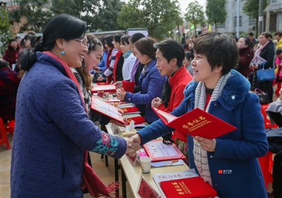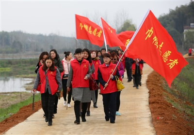 3月8日,向阳湖镇绿山村,咸安区在这里举行纪念“三八”国际妇女节108周年暨“环保徒步行,寻找好家风”活动。来自全区各行各业的妇女代表和当地村民300余人参加。