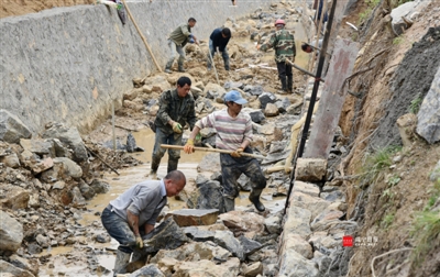 13日,赤壁市神山镇文清村明水洞段,护砌整修工地上一片忙碌。