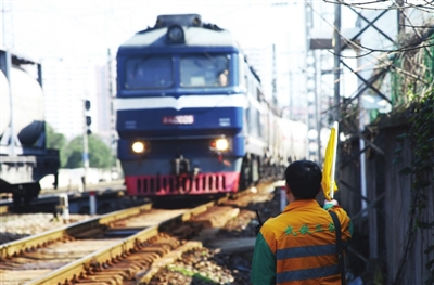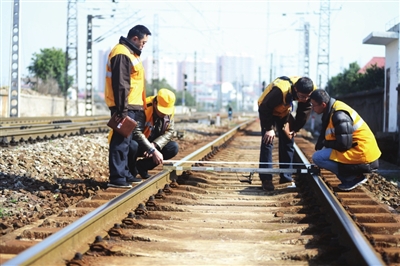 京广铁路线上,每隔几分钟便有一列火车呼啸而过。线路检查工始终与调度车间保持高度联系,将利用列车过往间隙,来回上下对铁轨检查。