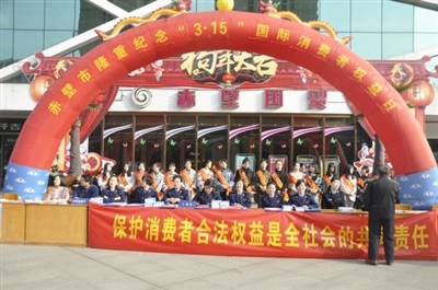强化工作举措。一是送法下乡。3月13日,该局深入车埠镇芙蓉村,发放《消费者权益保护法》、《湖北省消费者权益保护条例》宣传手册资料500余份,现场讲解消费维权知识,提醒农村消费者警惕各类消费陷阱。二是以案说法。3月14日,组织全市12315窗口工作人员及各“五进”维权站负责人进行《湖北省消费者权益保护条例》学习,结合维权案例,讲解维权方法、技巧,提升维权工作人员水平。三是现场咨询服务。3月15日,赤壁市工商局、赤壁市消委会联合市金融办、公安局、人民银行、电信、移动、联通等10家单位在国贸广场开展了以“品质消费 美好生活”为主题的大型宣传咨询服务,现场向市民发放宣传资料1000余份,法律宣传册2000余本。四是现场销毁。3月15日,该局现场集中销毁了电动车、加油机、热水器等各类假冒伪劣商品949件,价值39.8万元,有力的净化了消费环境。