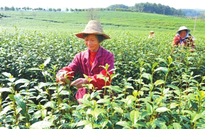 22日,咸安区双溪桥镇汪大珍茶场,采茶工一片片地采摘芽尖。