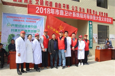 3月23日,市直卫计系统在崇阳县路口镇厢所村举办 “2018年市直卫计系统大型义诊及结对帮扶”活动,市直卫生系统党员干部职工以医疗工作者近200人参 加了此次结对帮扶活动,为村民送医送药,送去扶贫款。市结核病防治院为该村民送去了5000元药品和 20000元扶贫款。