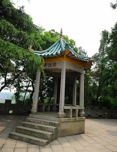 翼江亭原为周瑜的前沿观察哨和指挥所,因赤壁山如鲲鹏的翅膀斜插江心而得名,由辛亥功臣、国民党师长蔡汉卿重建。