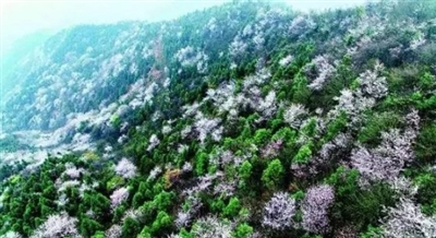 崇阳县铜钟乡龙泉山野樱花、桃花、李花竞相开放。