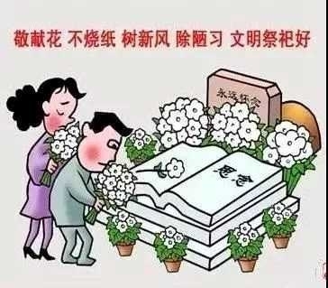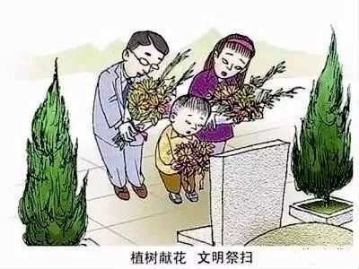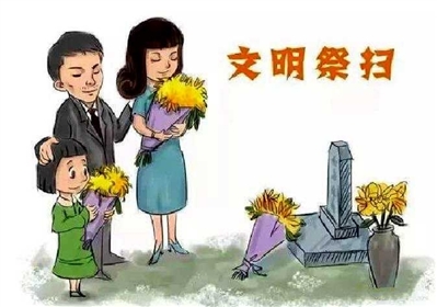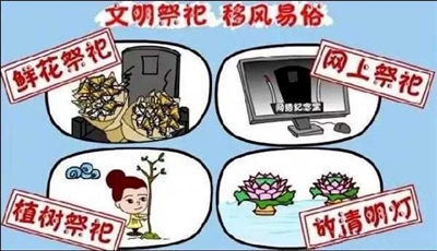 树立文明意识,提倡献一束鲜花、敬一杯清酒、植一棵绿树、记一段家事来怀念先人,营造文明祭祀的社会氛围。