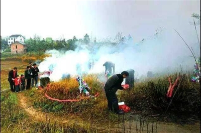 按照风俗,人们都会如下图一样上坟烧冥物、燃鞭炮,祭奠逝去的亲人,表达思念之情——