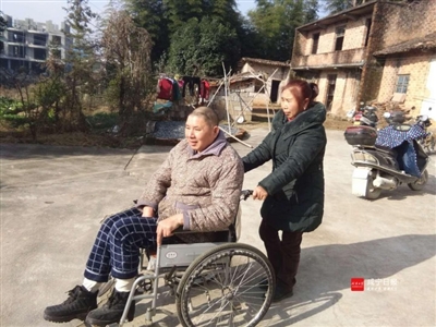 刚从外面干活回来的王细清,将电动摩托停在一旁,便连忙招呼我们进屋。王细清瘫痪多年的丈夫廖万龙,正坐在堂屋看电视,见妻子回来了,脸上露出欣喜的笑容。