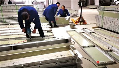 5日,通山县瑞兴铝塑模板科技有限公司员工在赶制订单产品。该公司总投资1.8亿元,产品主要销往中梁、碧桂园等多家集团。