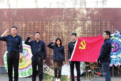 8日下午,农发行崇阳县支行组织全体党员前往崇阳县革命烈士陵园祭奠革命烈士。献花仪式结束后,全体党员重温了入党誓词。 通讯员 龚城浩 尹玲枝 摄