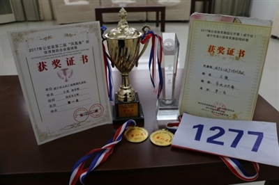 去年10月份,咸安文联的老师们突然来到文艺队里挑选种子选手,代表咸宁参加湖北省的体育舞蹈比赛,老师们一眼挑中了方震和陈华辉。1周时间里,舞蹈老师经过选择、对比,为两人报了水兵舞单项舞比赛。