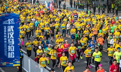 2018武汉马拉松比赛鸣枪开跑