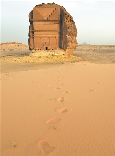 这是4月1日在沙特阿拉伯萨利赫迈达拍摄的砂岩上凿出的“孤独城堡”。坐落于沙海中的沙特萨利赫迈达古城是该国著名文化遗址,于2008年入选联合国世界遗 产名录。 (本报综合)