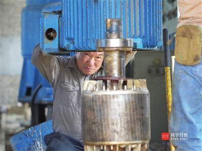 4月3日,技术人员正在维修官埠桥镇齐心垸泵站电机。当前,正值春耕时节,咸安区农机部门组织技术分队赴辖区各处泵站进行检修维护,确保农事用水需求。