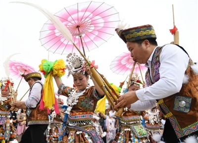 当日是农历三月初三,广西多地举行活动欢庆传统节日“三月三”。