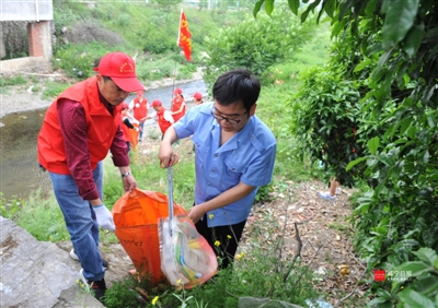 20日,咸安区双溪桥镇渠首河沿线,该镇机关干部和沿河5个村的党员300余人,对河道两旁生活垃圾进行清理。