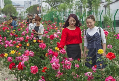 通城县把美丽乡村建设与乡村旅游结合起来,在麦市镇冷塅村种植百余亩月季花,目前正值盛花期,游客纷至沓来。