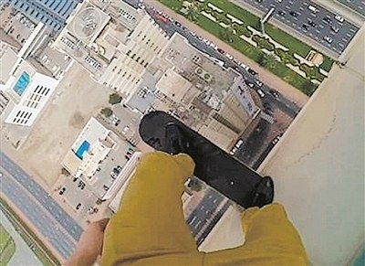 日前,一则视频记录了21岁青年尼基塔在迪拜一座50层高的摩天大楼楼顶,表演一系列异常惊险动作的画面。视频显示,尼基塔站在大楼边缘的滑板上,似乎没有一丝恐惧。在一个镜头中,他甚至在靠近大楼边缘的地方做了一次前滚翻,然后坐在了大楼边缘,双脚从边缘垂下,晃来晃去。