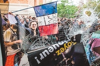 当地时间5月1日,法国巴黎,国际劳动节当天,约2万人示威。其中1200名黑衣蒙面人属于“黑色集团”极端团体,这些黑衣蒙面人在工会的游行队伍之外,破坏公物和私物,纵火焚烧商店,向警察投掷物品,引起触目惊心的暴力场面。