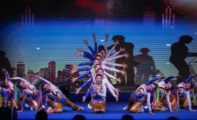 5月3日晚,表演者们正在为劳模表演《工间操》。