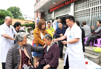 7日,咸安区浮山办事处银泉社区居民服务中心,一些中老年人在享受艾灸、推拿、拔火罐等理疗服务。当天银泉社区联合麻塘风湿病医院,围绕第5月8日的第71个世界红十字日的主题,开展急救宣教义诊活动。活动现场为社区居民讲解自救互救知识、风湿病防治知识;提供免费测血糖、血压、血尿酸等服务。