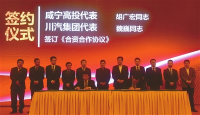 4月12日,咸宁高新投资集团有限公司和四川汽车工业集团有限公司签订《合资合作协议》,共同出资建立野马汽车咸宁新能源生产基地,填补我市在新能源汽车整车生产领域的空白。项目总投资21亿元,具备年产10万辆整车的生产能力,预计年实现销售收入100亿元,税收约1.75亿元。