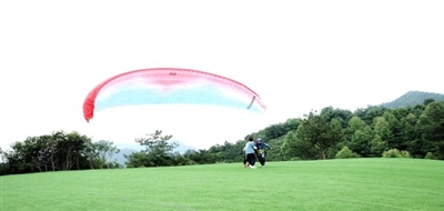 由于柃蜜小镇北靠白崖山,南临九曲河湾,地势平坦,视野开阔,加上风向稳定、气流舒缓,特开设遨游翔滑伞项目,领略鸟儿一般飞翔的自由,穿梭云端,在空中俯瞰柃蜜小镇的壮丽景观。